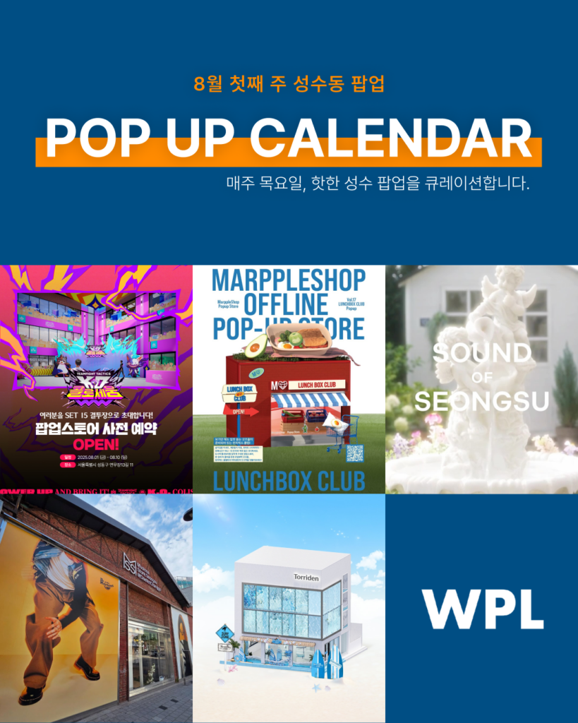 성수동은 새로운 전시회가 자주 열리기 때문에 방문할 때마다 색다른 경험을 할 수 있어요.
